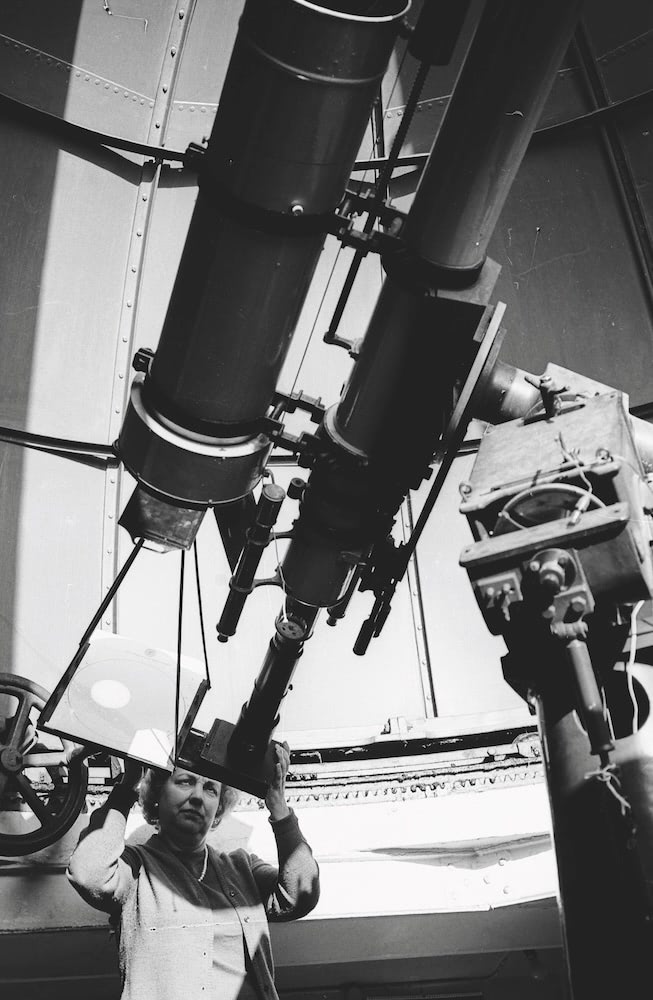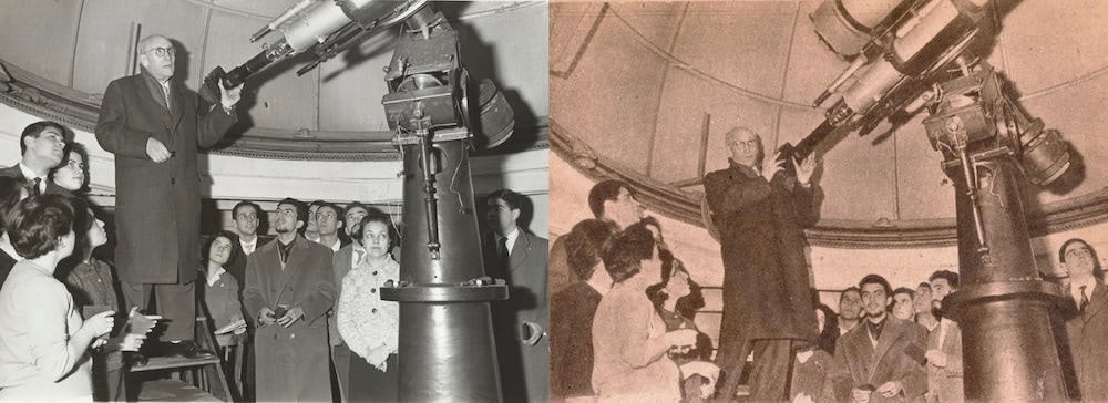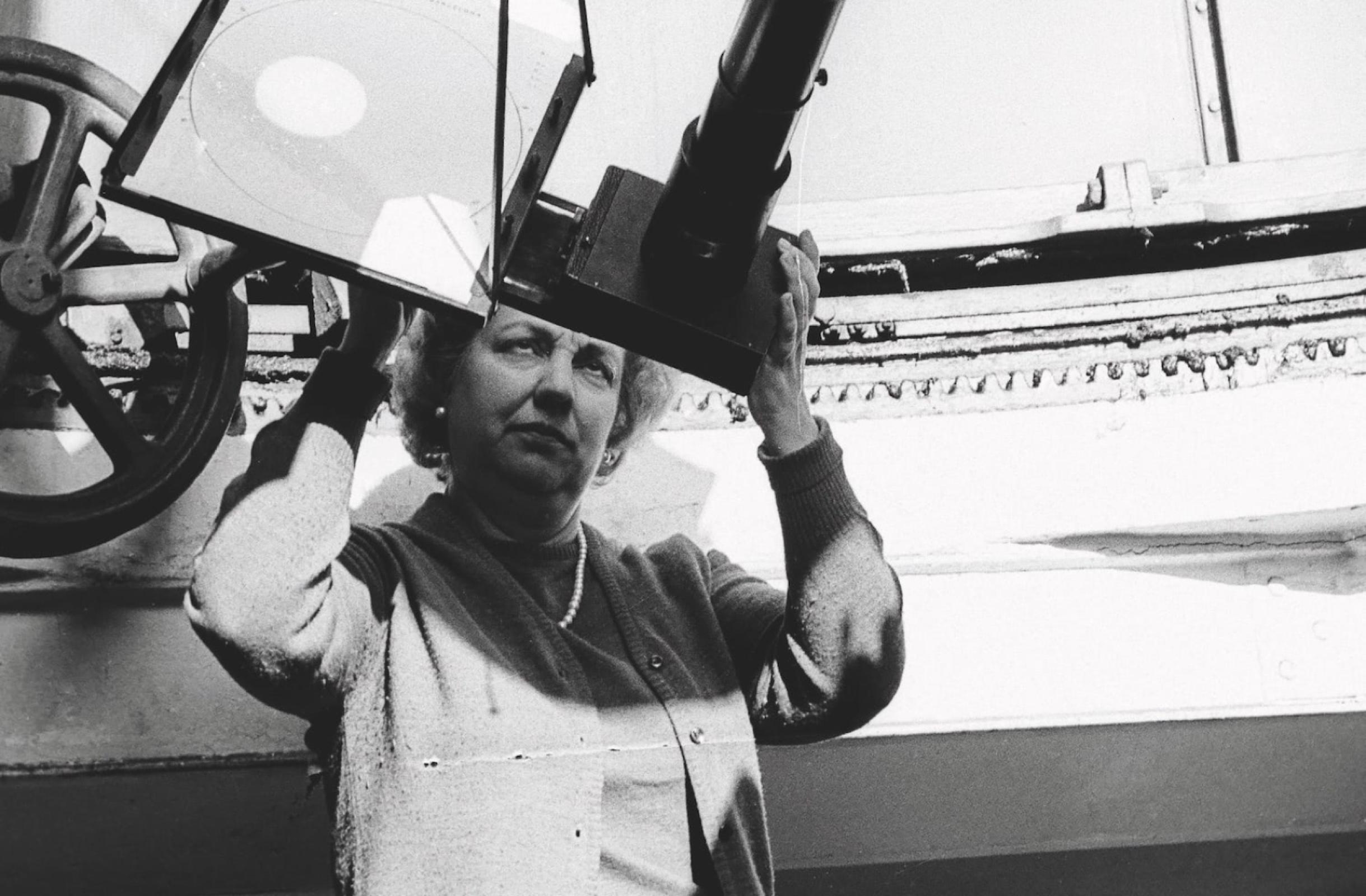 Figura 2. Observación del Sol con el telescopio Grupp. En la entrevista grabada en “Con A de Astrónomas, UNED, 2009” la Dra. Català comentó: “Cuando yo hacía observaciones del Sol, tomábamos cuatro fotografías diarias que enviábamos a Zúrich, donde las reunían todas y analizaban la evolución del Sol”.