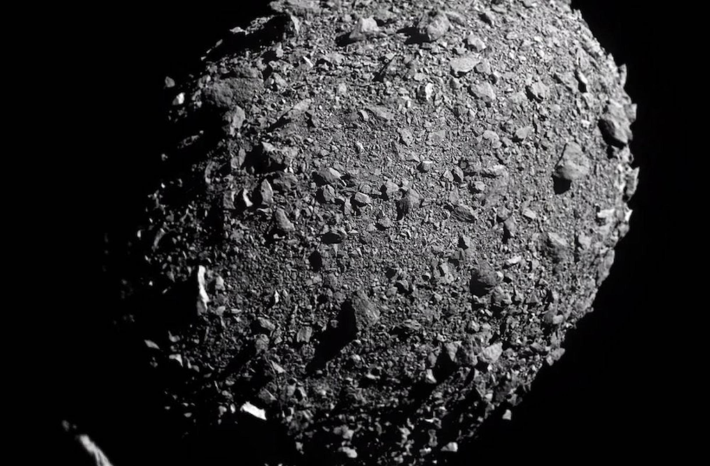 Figura 4: Imagen de la superficie de Dimorphos captada por la cámara DRACO a 68 km de distancia, apenas 11 segundos antes del impacto [NASA/Johns Hopkins APL].