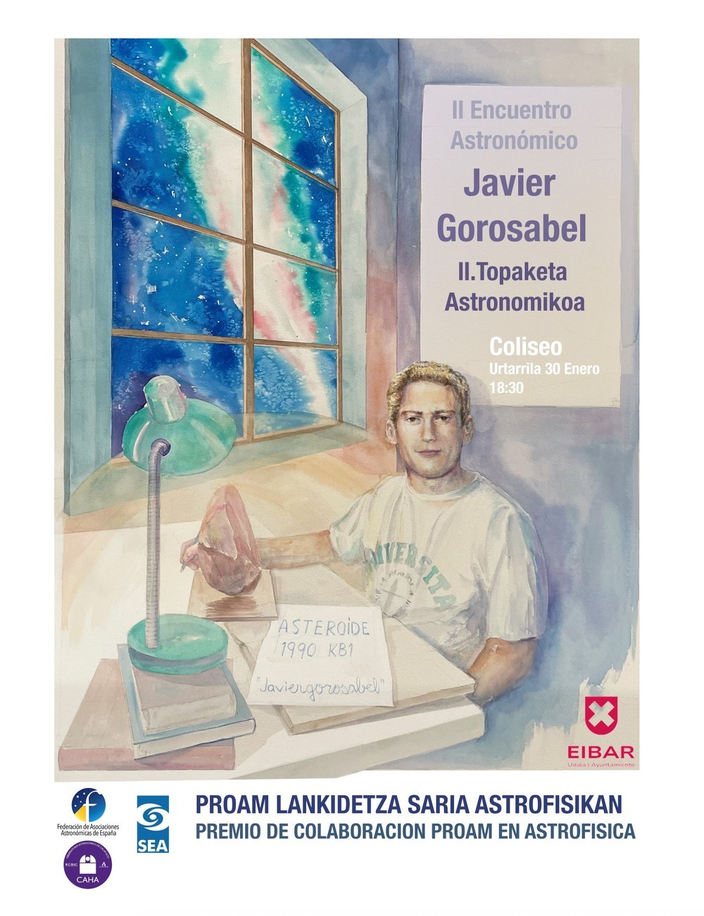 El evento tendrá lugar el próximo viernes 30 de enero, a las 18:30 horas, en el Teatro Coliseo de Eibar. Es una iniciativa organizada por la Comisión Proam de la Sociedad Española de Astronomía (SEA) y el Ayuntamiento de Eibar. El evento